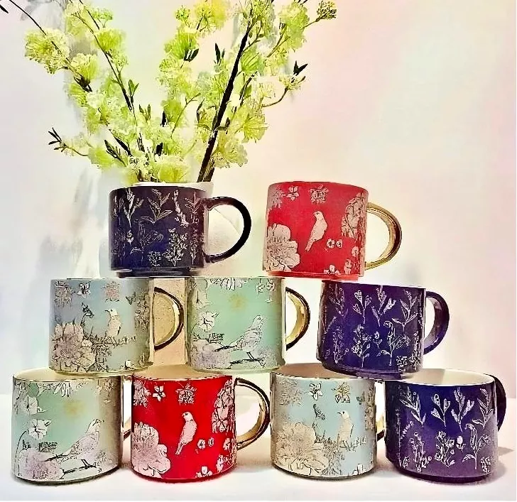 La tazza in ceramica di BYF con maniglia dorata elettroplata è particolarmente distintiva grazie alle loro maniglie placcate in oro e decalcomanie fatte a mano. Rich di colore e splendidamente modellati, sono anche pratici, rendendoli oggetti di tutti i giorni versatili perfetti per uso personale o come regali. Queste bellissime tazze combinano un fascino estetico con la praticità, trasmettendo un senso di scopo e qualità che migliora la qualità della vita, a differenza di qualsiasi tazza ordinaria.