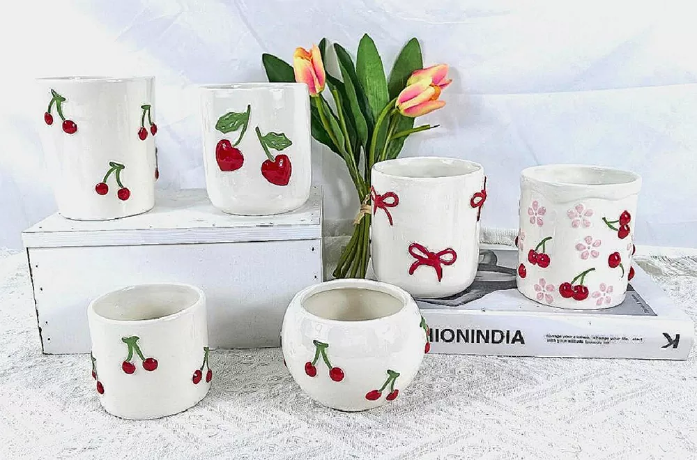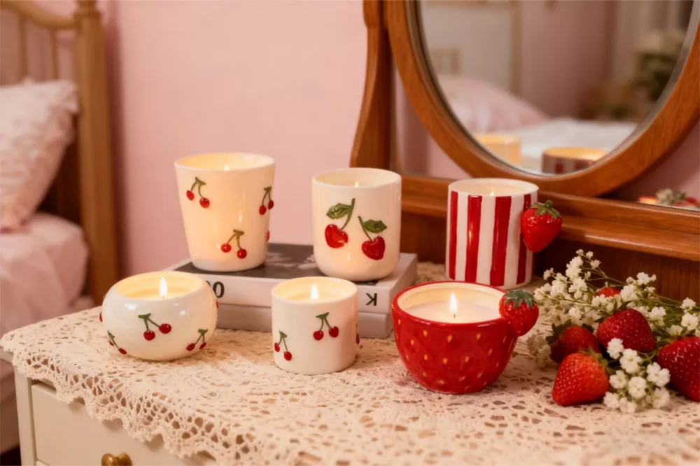 La serie di barattoli di candela in ceramica super adorabili di BYF presenta barattoli di candela in ceramica fatti a mano di fascia alta con uno stile di design "super carino". I disegni incorporano elementi dolci classici come ciliegie rosse, fiocchi tridimensionali e fragole, con una glassa liscia e forme diverse. Realizzato con materiali sicuri ed ecologici, ha un'eccellente resistenza al calore e si adatta perfettamente agli stoppini standard e a varie basi di cera, rendendolo sia un contenitore per candele di alta qualità che un oggetto decorativo artistico che migliora l'arredamento della tua casa.